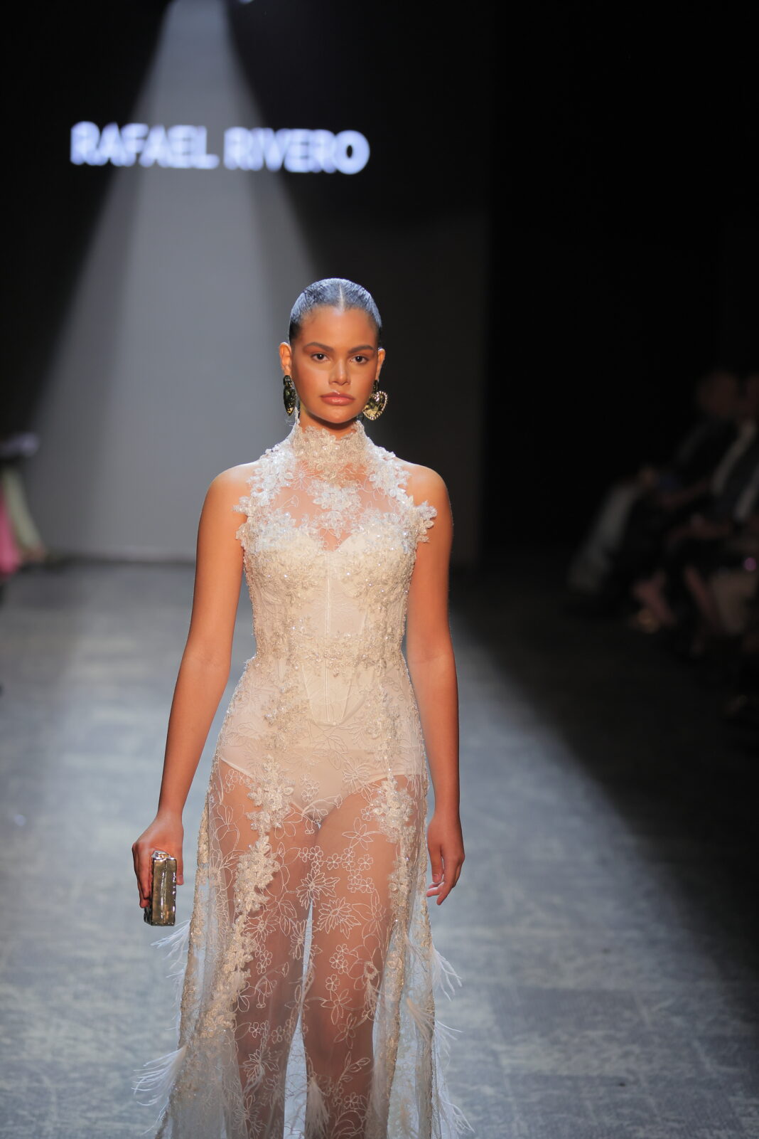 La pasarela se vistió de gala con una propuesta que reafirmó el sello de Rivero: elegancia, dramatismo y una estética inspirada en el art déco, el mundo animal, la arquitectura y obras de arte exóticas, transformadas en esculturas textiles llenas de vida.